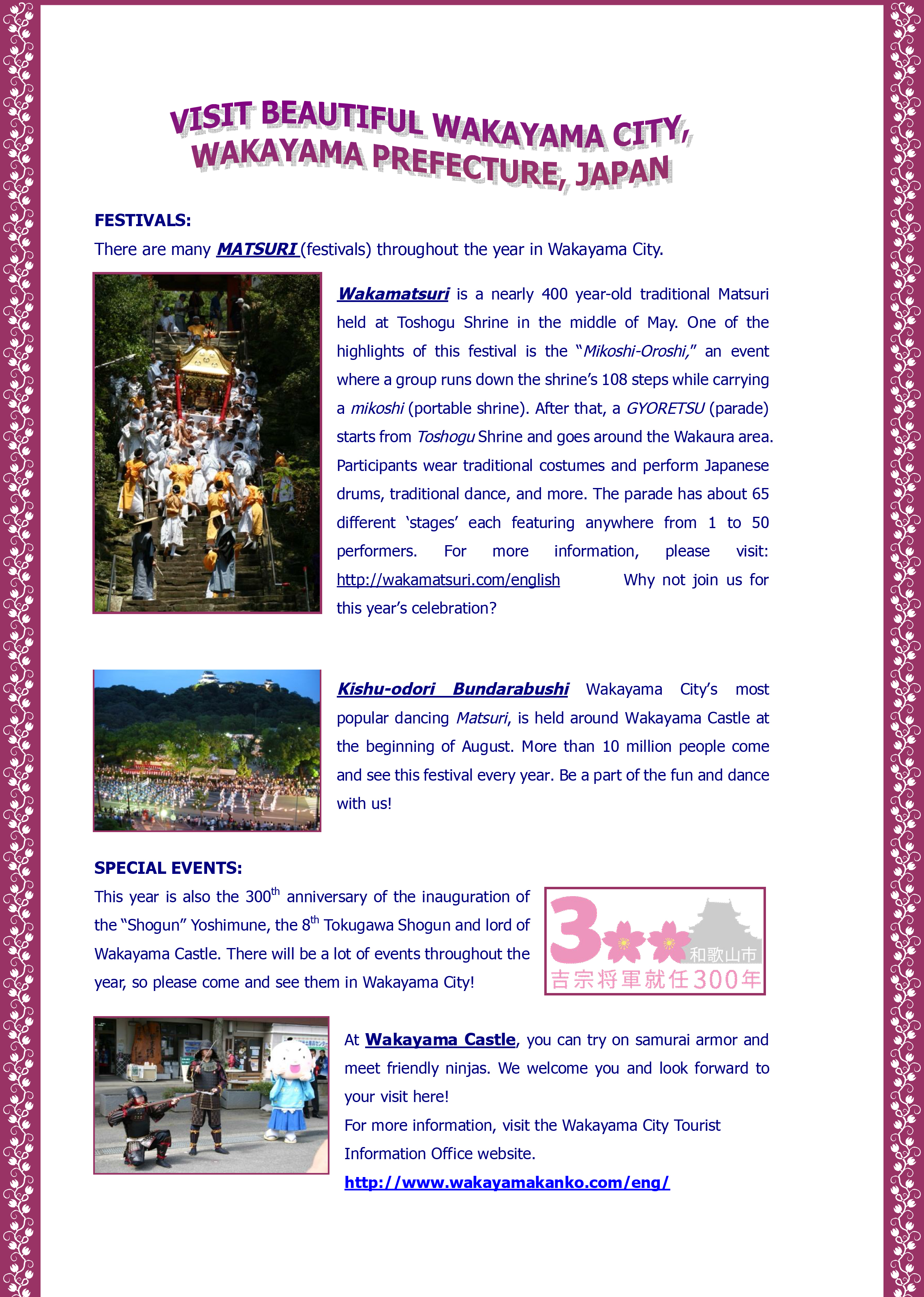 Click her for a Wakayama City Festivals PDF